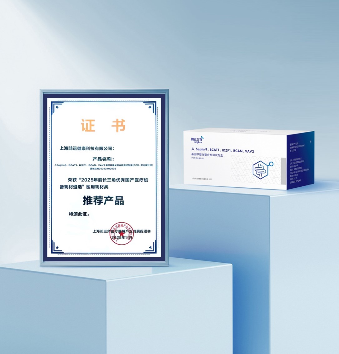 2025年11月16日,由上海长三角医疗器械产业发展促进会主办的医疗器械应用技术专题会议在沪召开。作为第五届长三角医疗器械产业高质量发展大会的核心环节,本次会议汇聚医疗权威专家,评选极具分量。凭借突出技术创新力、扎实临床实用性及国产化突破优势,常艾克®-人Septin9、BCAT1、IKZF1、BCAN、VAV3 基因甲基化联合检测试剂盒(PCR-荧光探针法),成功斩获“长三角新优国产医疗器械推荐产品”称号,得到长三角区域三甲医院专家及二甲以上医疗机构的高度认可。