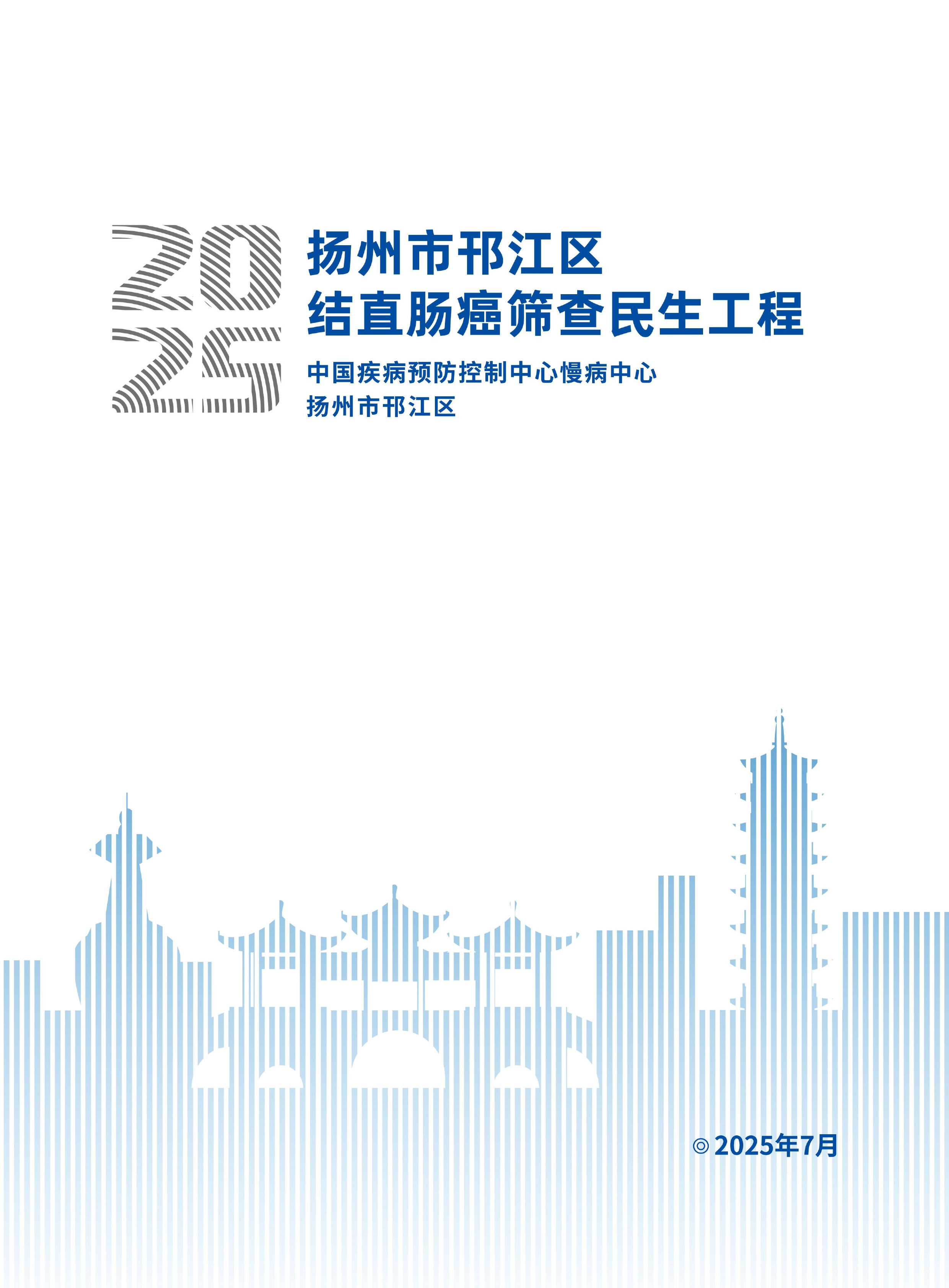 2021年1月,扬州市邗江区率先启动结直肠癌筛查民生工程,计划利用三年时间为20万名邗江区40-74岁符合条件户籍居民免费提供结直肠癌筛查。项目由邗江区卫健委牵头实施,中国疾病预防控制中心慢病中心作为技术指导单位、江苏鹍远生物科技股份有限公司作为技术支持方,采用肠癌血液多基因甲基化检测技术进行初筛,结合结肠镜检查,对提高人群筛查的依从性和疾病检出率进行了有益探索,通过建立“预防 - 筛查 - 诊断 - 治疗 - 康复”一体化服务模式,实现了从群体预防到个体化诊疗的无缝衔接,形成了结直肠癌筛查的“扬州模式”。