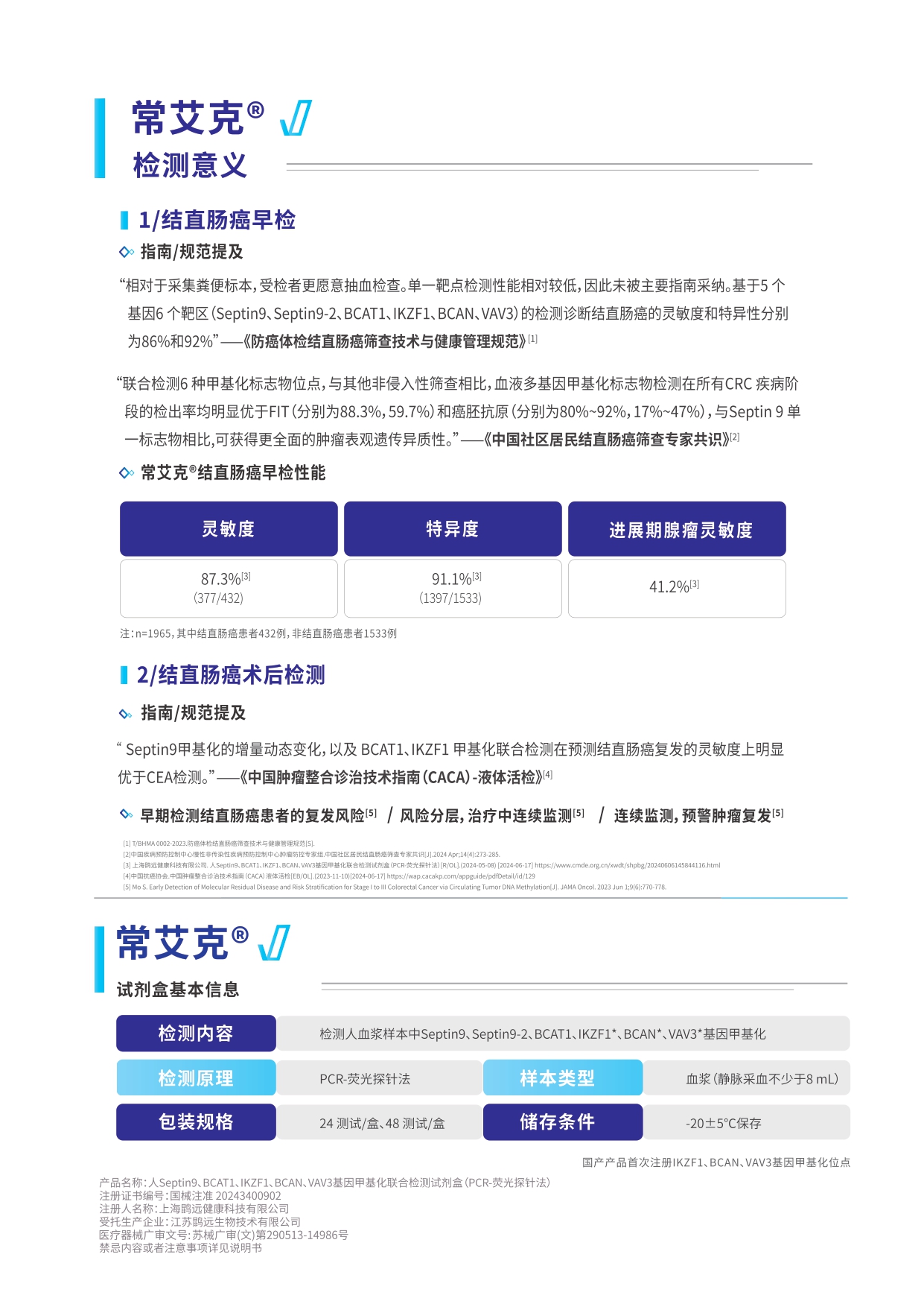 肠癌血液多基因甲基化联合检测试剂盒: 常艾克®