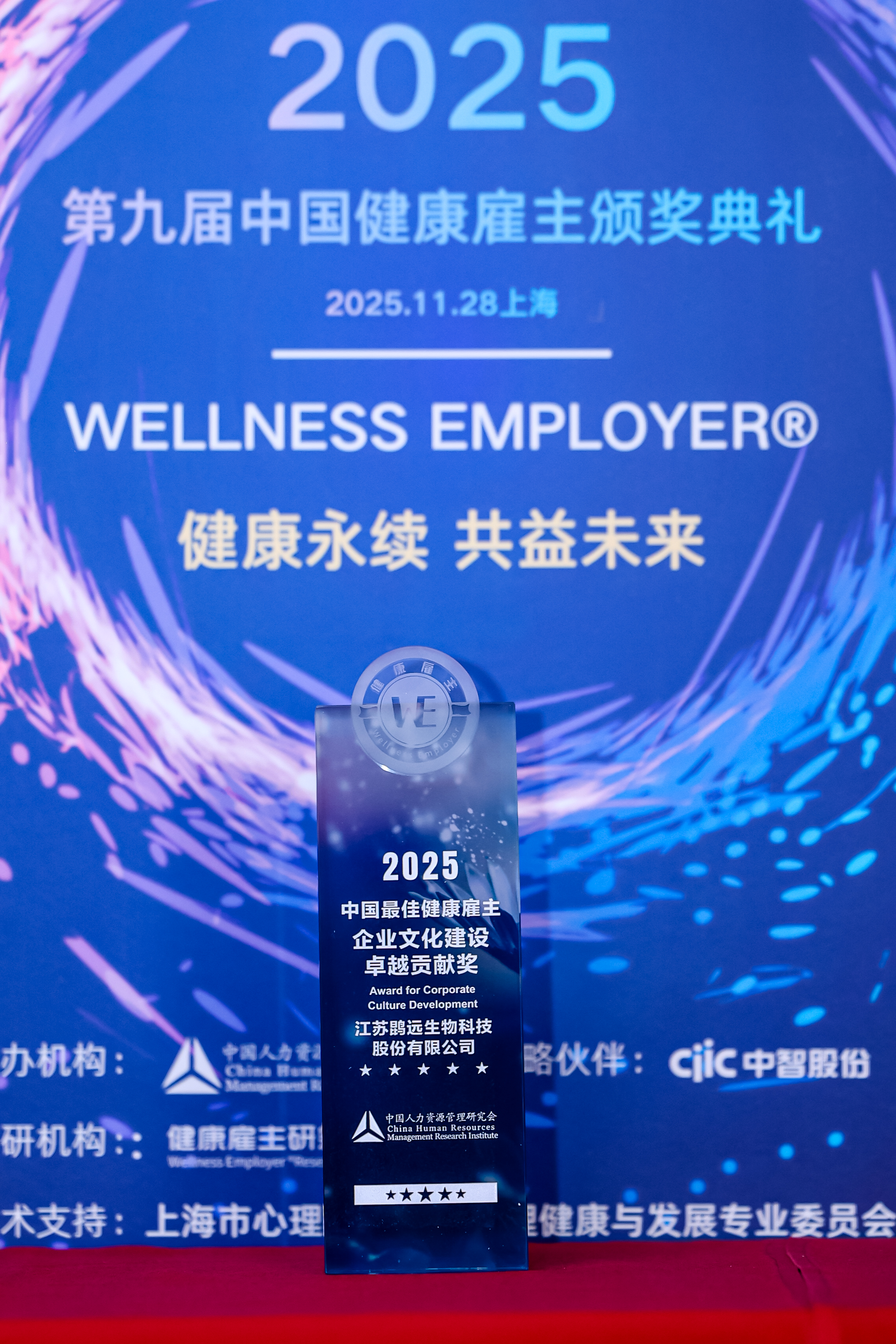 11月28日,由中国人力资源管理研究会与中国国际技术智力合作集团有限公司联合主办的“第九届(2025 年)中国健康雇主评选”在上海揭幕,鹍远生物凭借其在企业健康管理与文化建设方面的突出实践,荣膺“2025中国最佳健康雇主企业文化建设卓越贡献奖”。这也是鹍远生物连续第六年获评“中国最佳健康雇主”,彰显了公司在员工关怀、人才发展及社会责任等方面的持续投入与卓越成效。